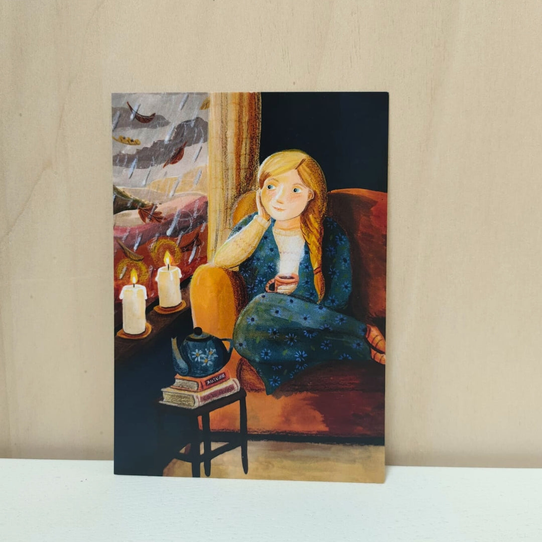 Knus, warm en vol kleine details: dit cosy kaartje brengt een moment van rust en aandacht. Perfect om een persoonlijke boodschap mee te sturen of gewoon om even bij weg te dromen.