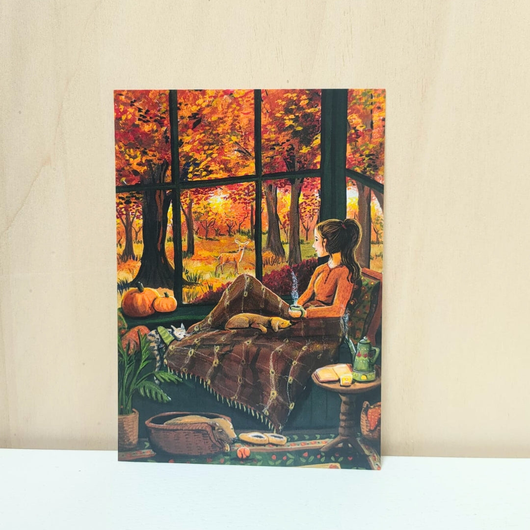 Knus, warm en vol kleine details: dit cosy kaartje brengt een moment van rust en aandacht. Perfect om een persoonlijke boodschap mee te sturen of gewoon om even bij weg te dromen.