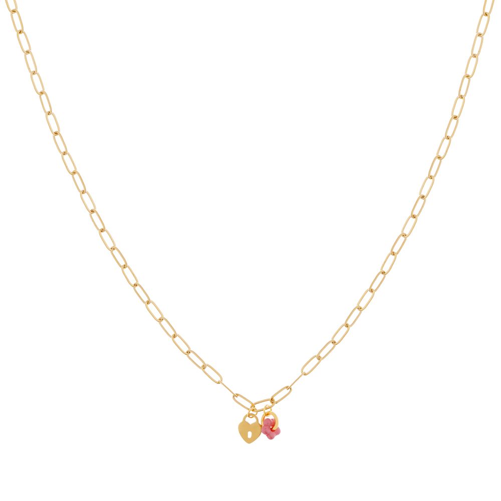 Een mooie minimalistische ketting met een klein hartje en roze bloemetje als hanger. Gemaakt van stainless steel dus het sieraad zal niet verkleuren!
