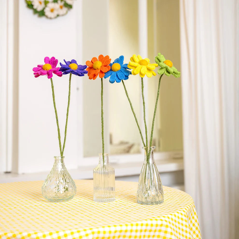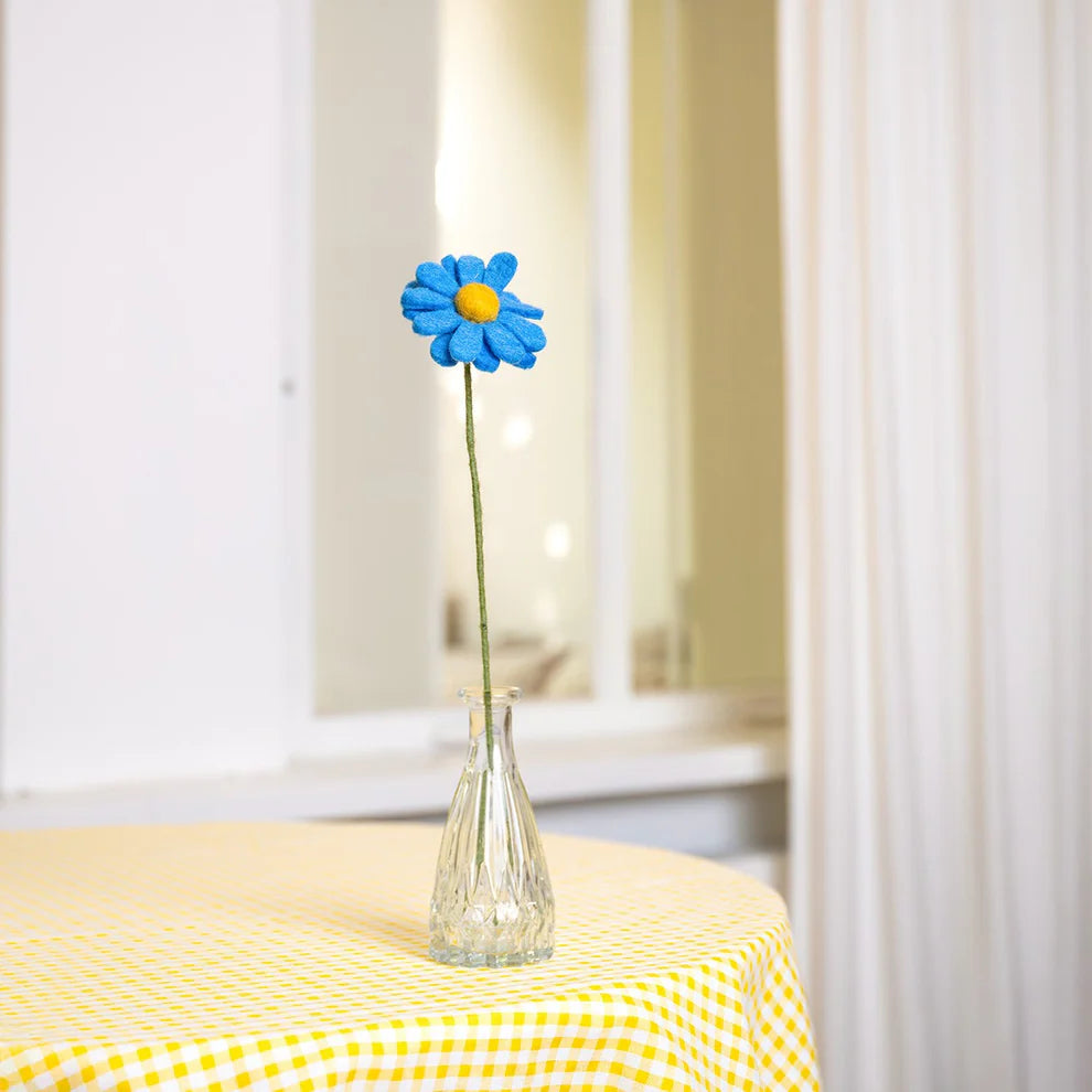 Met dit leuke azuurblauw margrietje breng je frisse vrolijkheid in huis! Naast dit margrietje zijn er nog veel meer mooie vilten bloemen in onze webshop te vinden. Combineer ze tot een boeketje voor een sfeervol accent! Dankzij het metaaldraad in de steel buig je de bloem eenvoudig in de gewenste vorm voor een speels effect.