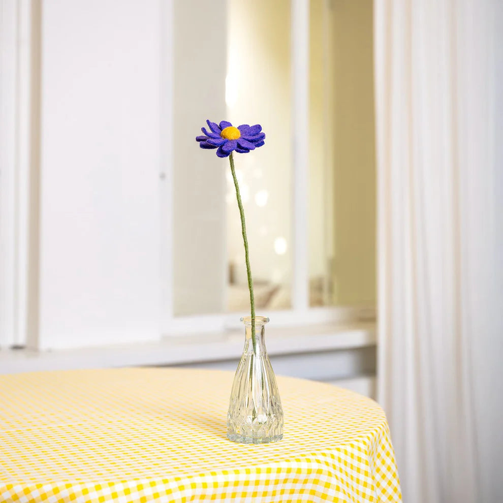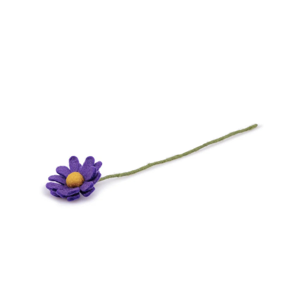Met dit leuke paarse margrietje breng je frisse vrolijkheid in huis! Naast dit margrietje zijn er nog veel meer mooie vilten bloemen in onze webshop te vinden. Combineer ze tot een boeketje voor een sfeervol accent! Dankzij het metaaldraad in de steel buig je de bloem eenvoudig in de gewenste vorm voor een speels effect.