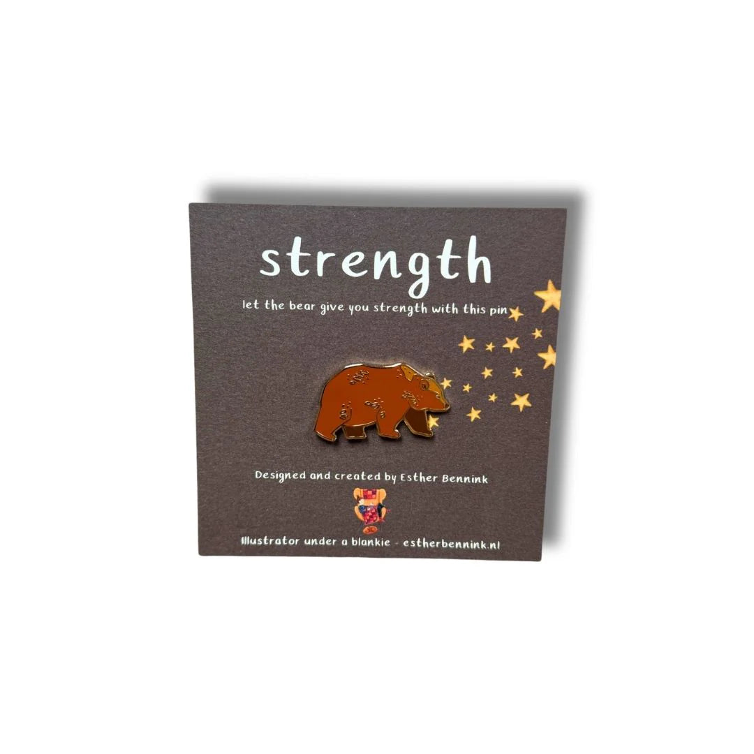 Een prachtig emaille pinnetje van een beer. “Let the bear give you strength with this pin” staat erbij, want deze beer zit boordevol superkrachten! De beer bezit namelijk een echte oerkracht. Hij is sterk en krachtig, maar houdt zijn kracht rustig bij zich. Kracht is niet altijd zichtbaar en dat maakt hem juist bijzonder.