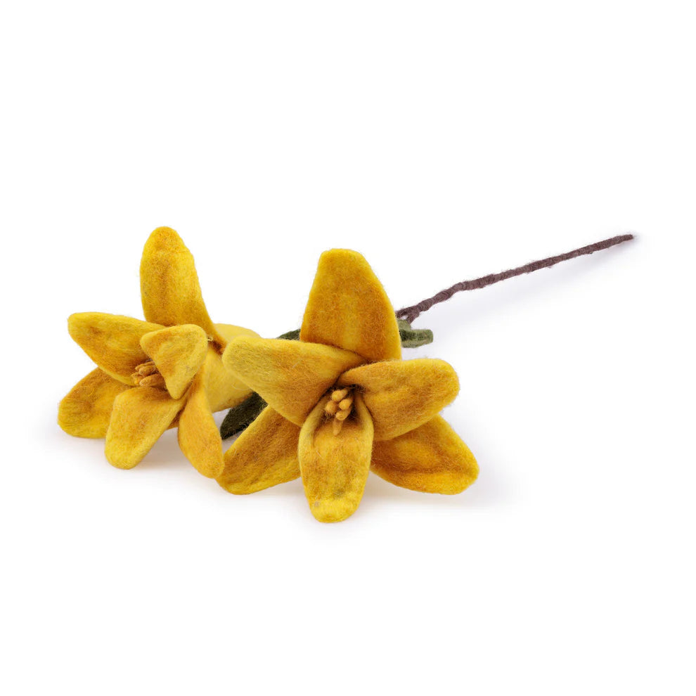 Met deze prachtige gele Lelie heb je altijd mooie bloemen in huis! Naast deze lelie zijn er nog veel meer mooie vilten bloemen in onze webshop te vinden. Combineer ze tot een boeketje voor een sfeervol accent! Dankzij het metaaldraad in de steel buig je de bloem eenvoudig in de gewenste vorm voor een speels effect.