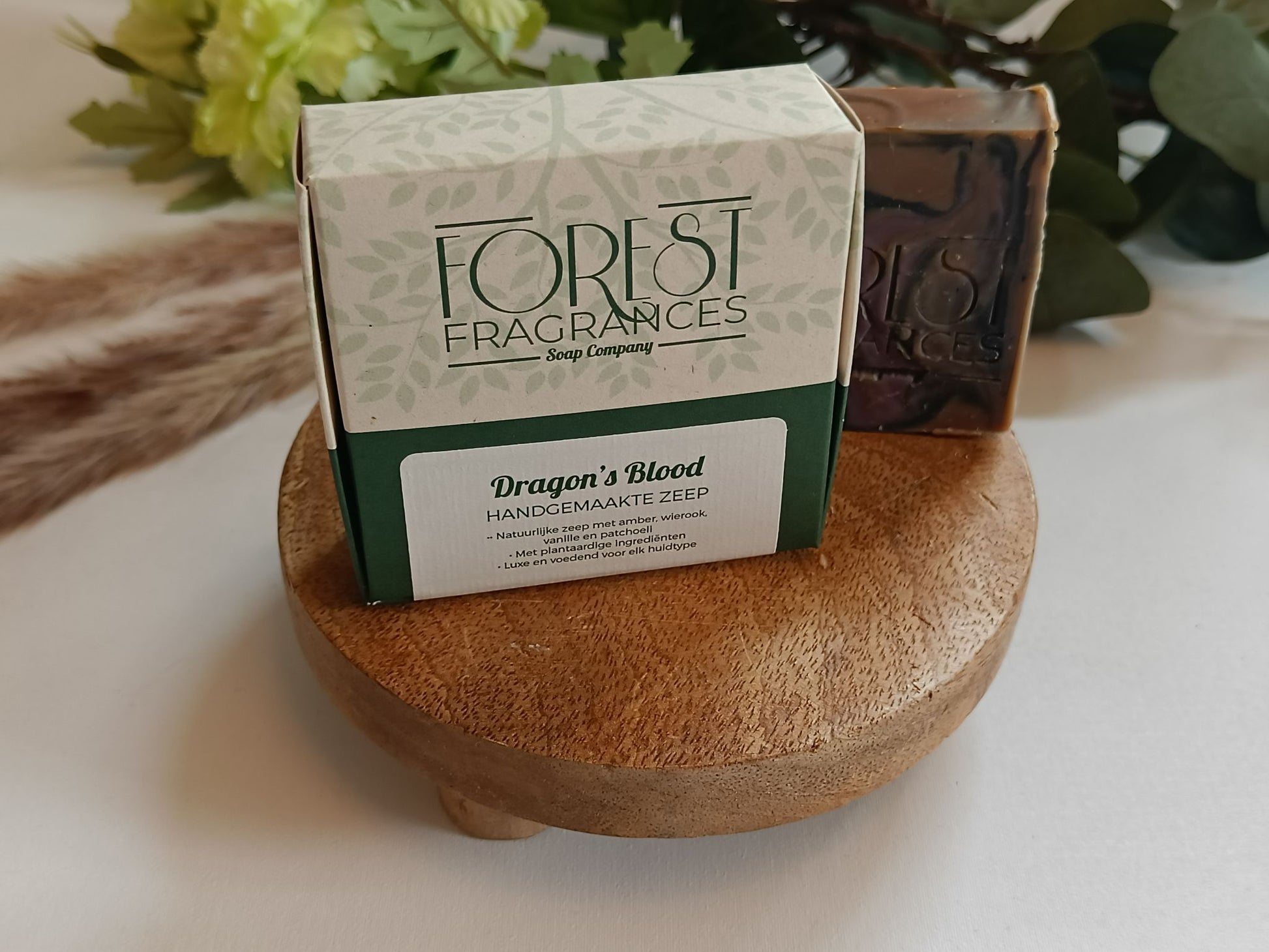 De zeep Dragon’s blood heeft een hele complexe, mysterieuze en kruidige geur. Je ruikt onder andere amber, wierook, vanille en patchoeli, maar ook een vleug van bloemen zoals roos en jasmijn en zelfs een beetje grapefruit!